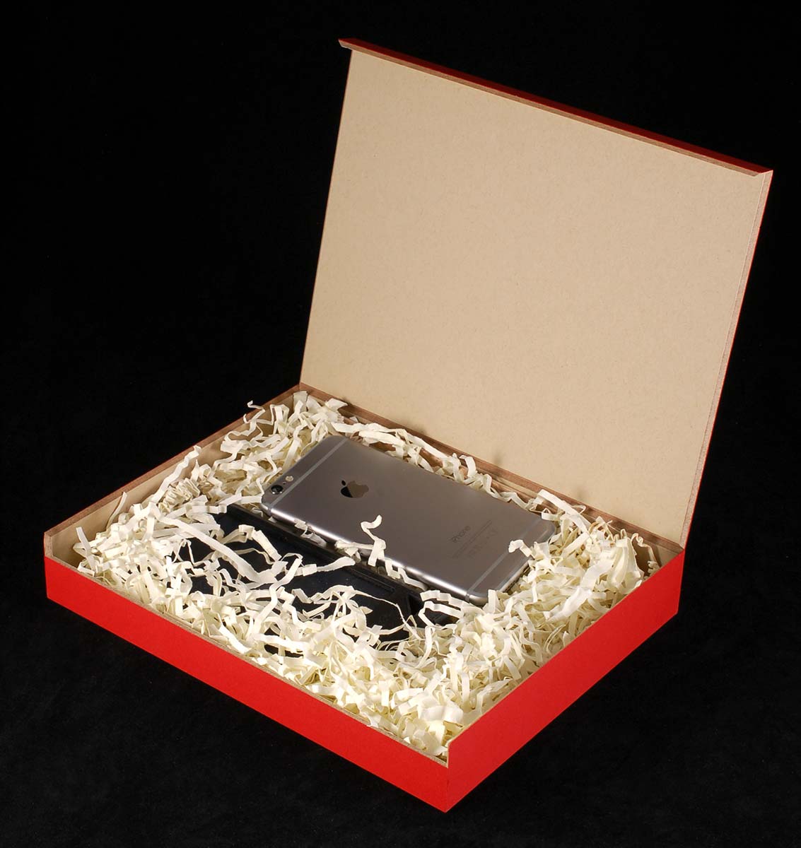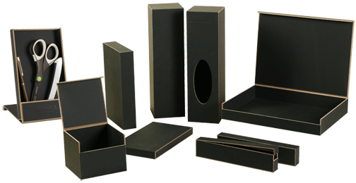 MinnMade starts with a tempered hardboard substrate made of fine sawdust particles. Combine this with a premium paper and the MinnMade Product Line was begun. There were many things learned during the process of developing this product. No hardware is required, the design of the box takes care of the hinge. Depending on the design, when a MinnMade box is opened, it may be completely silent or if the cover is a miter design, it will offer up the slight rasp of wood on wood. See more of the options (how about textures?) on our MinnMade page.